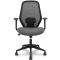 Silla de oficina Ergo529 con mecanismo Basculante tapizada con Tela color Gris y malla color Negro. Equipada con lumbar 1D, Brazos fijos y Ruedas de nailon 50 mm